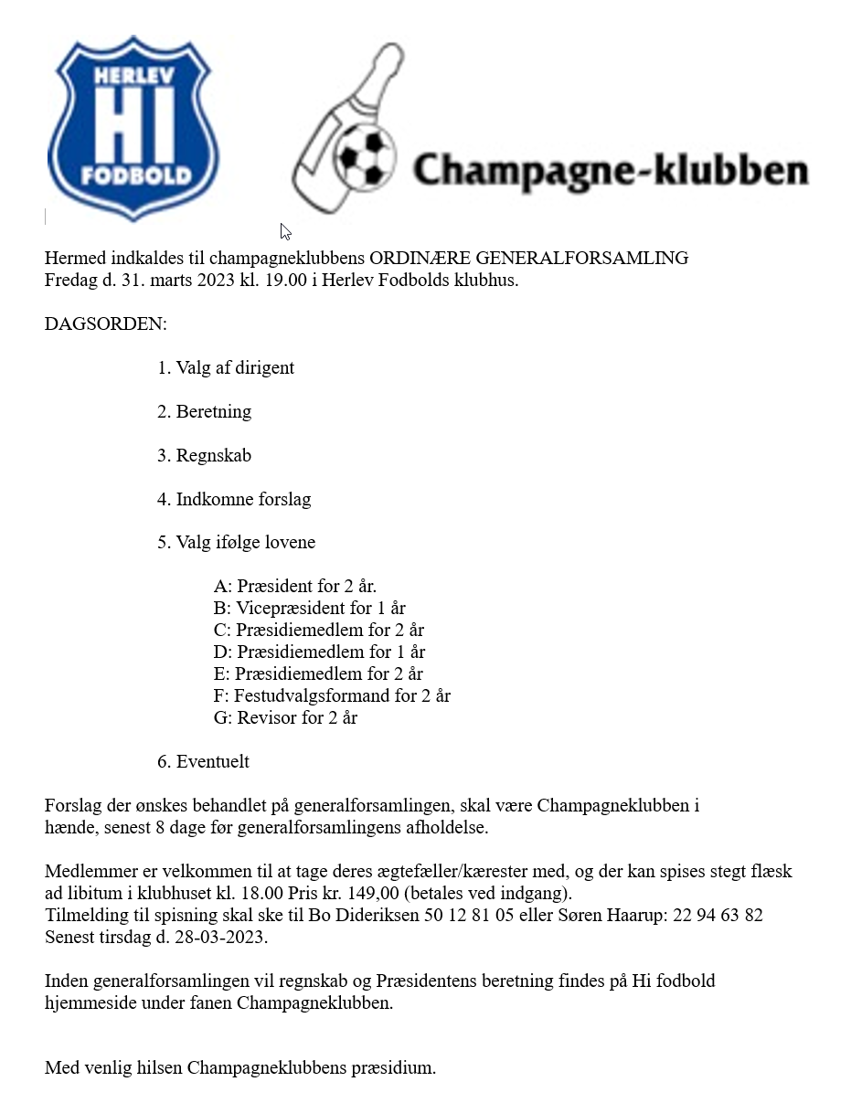 Generalforsamling i champagneklubben 31. marts 2023